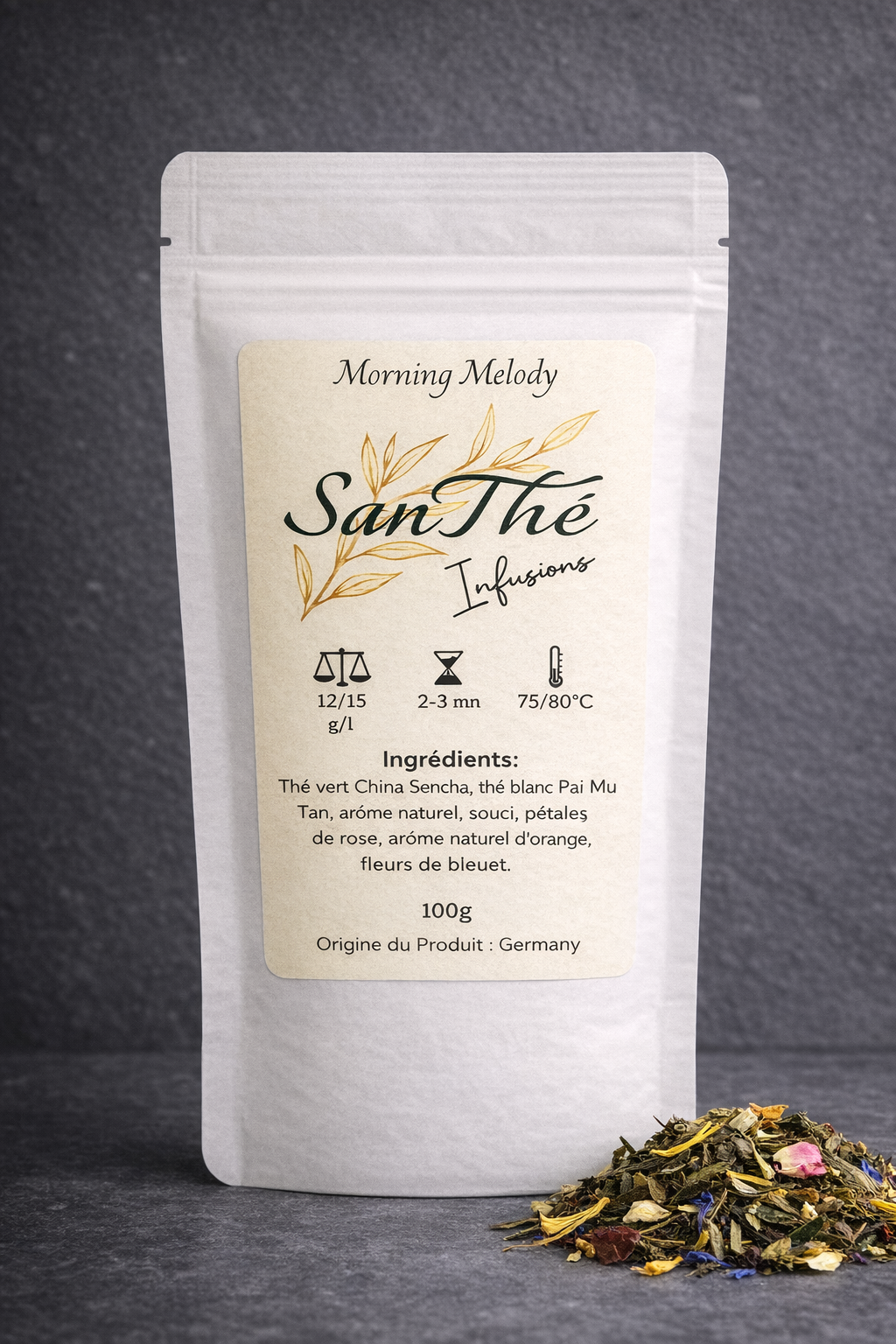 Ideal to accompany your mornings or your moments of relaxation, Morning Melody green tea does not just delight your taste buds. Each sip of this green tea is an invitation to start the day with energy and serenity.
